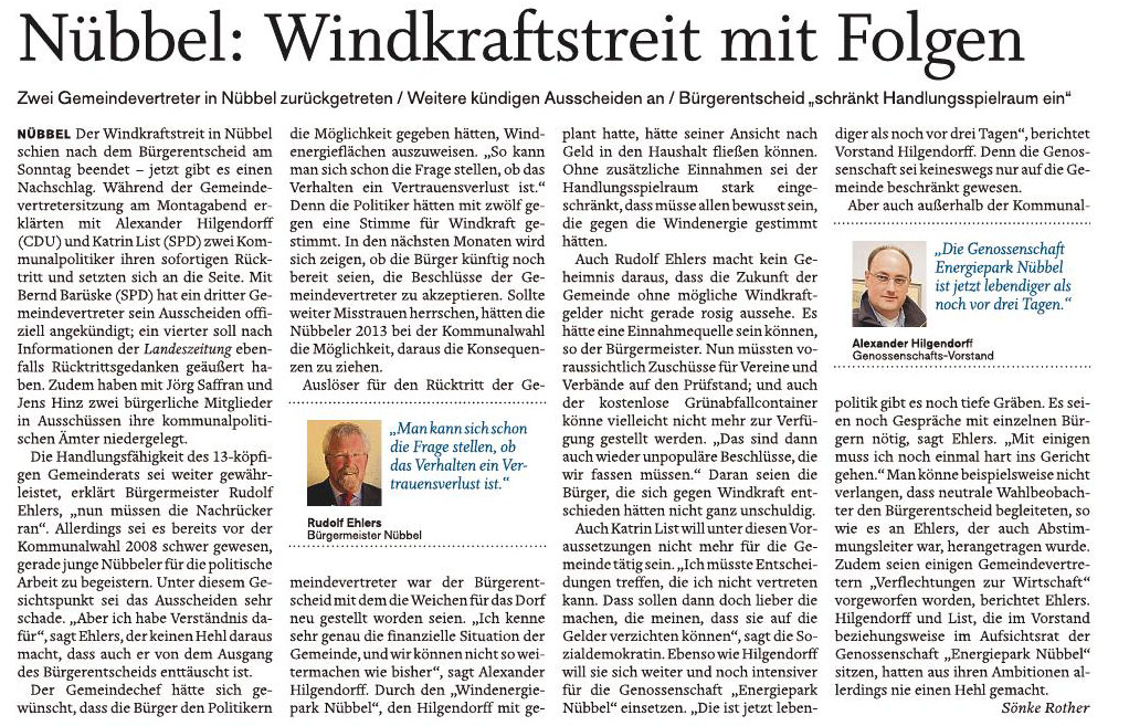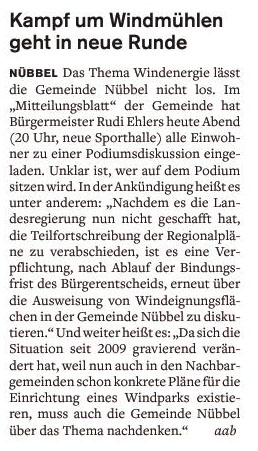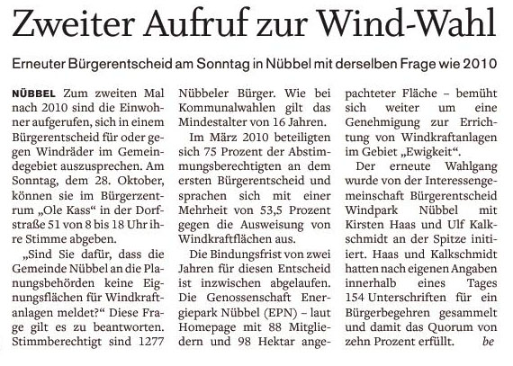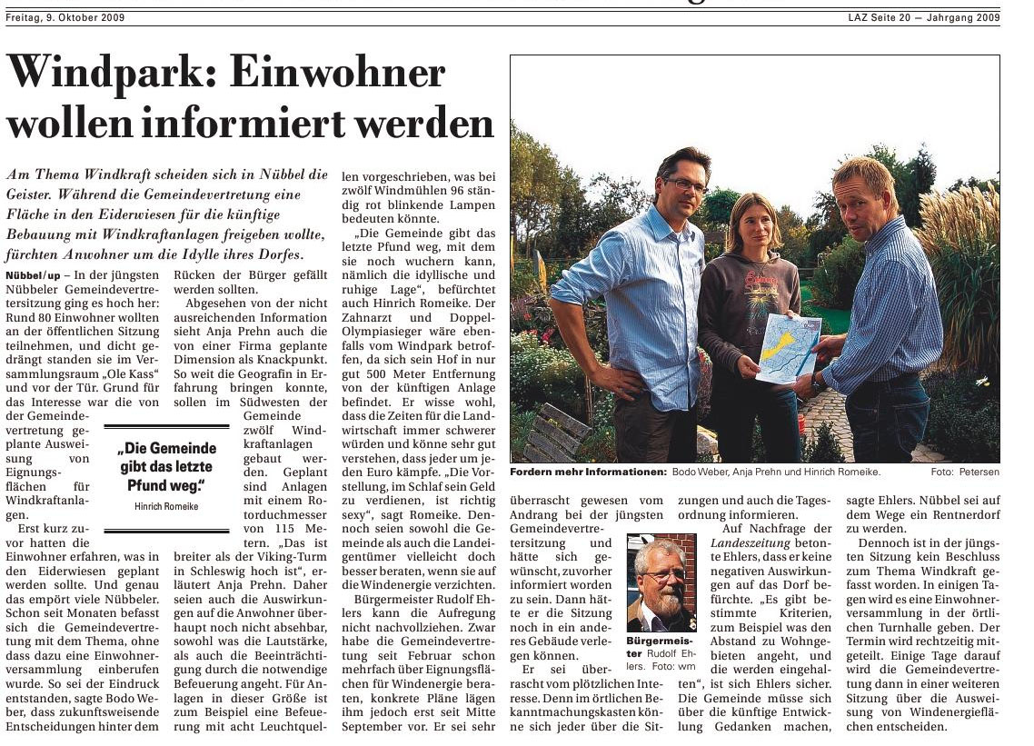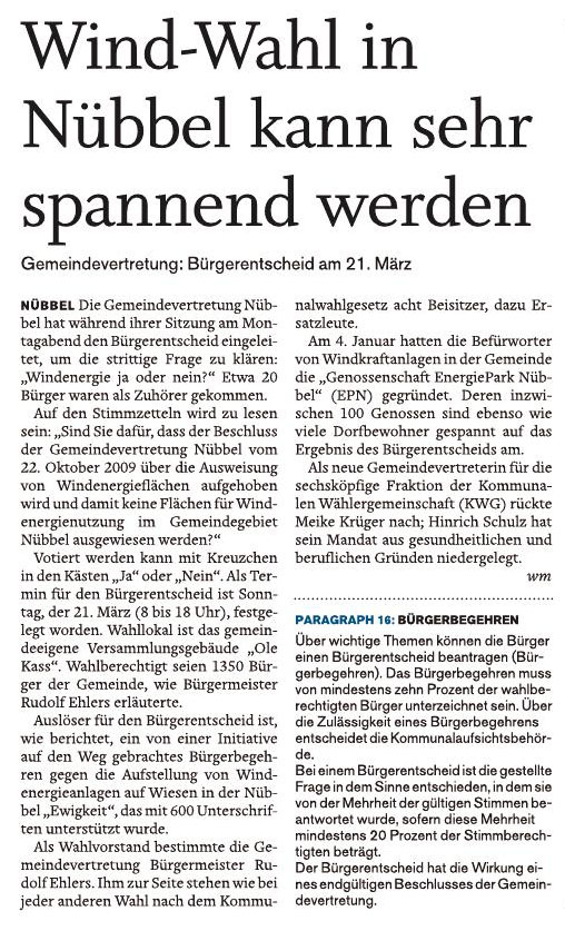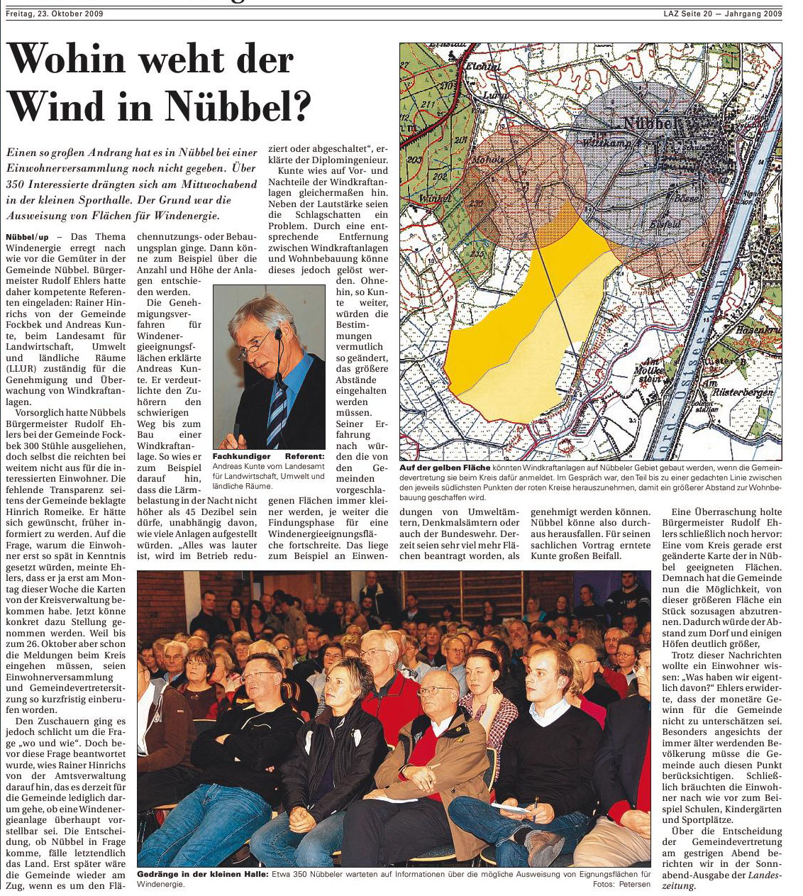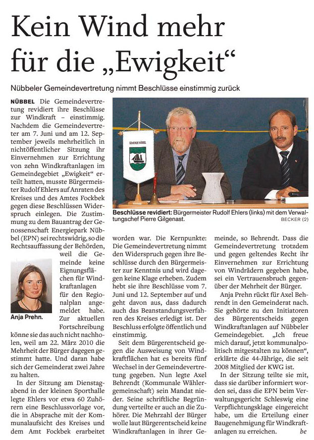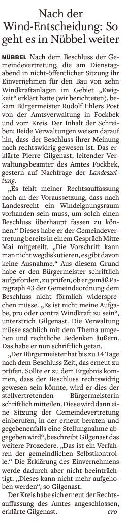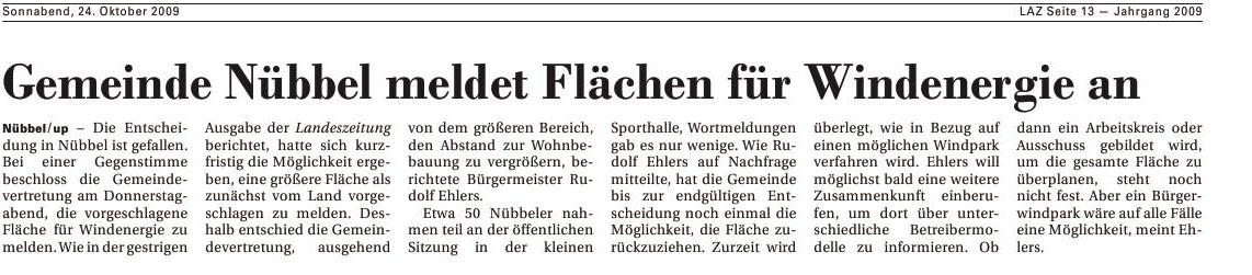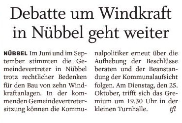 zum Aufstellen von Windmühlen abschließen sollen. Daraufhin wurde der Gemeinderat aktiv,