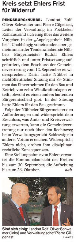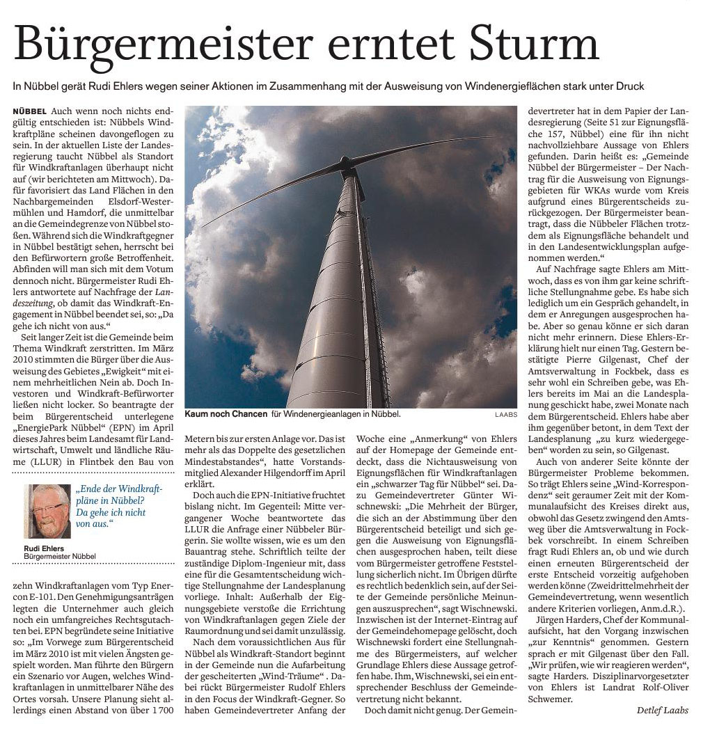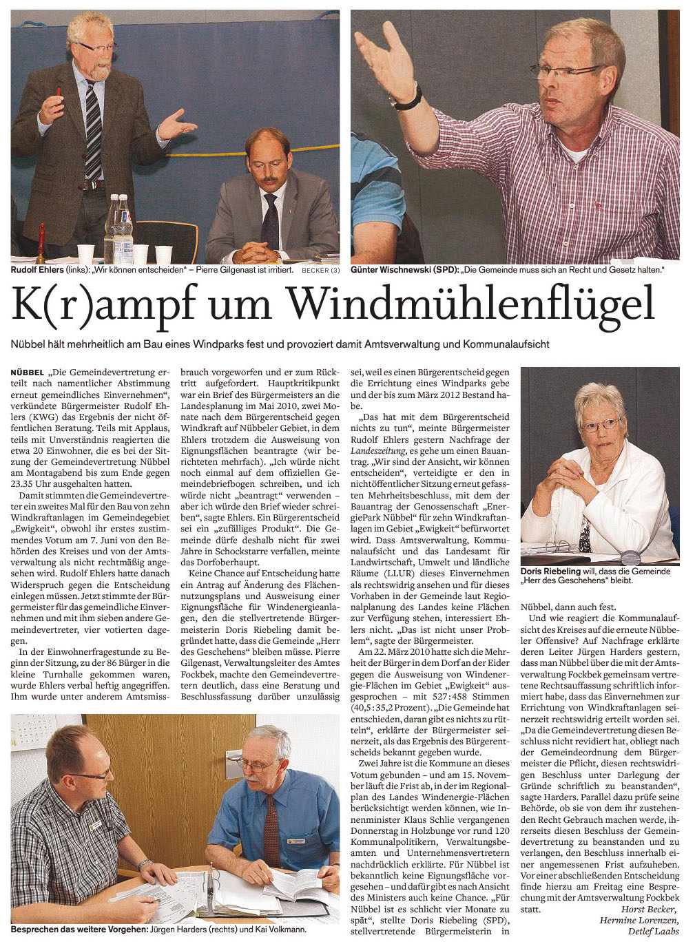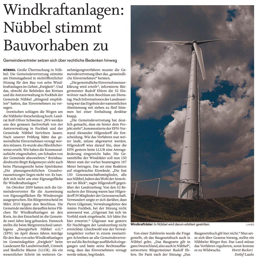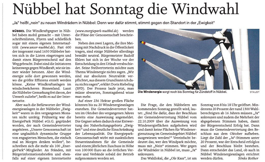 zum Aufstellen von Windmühlen abschließen sollen. Daraufhin wurde der Gemeinderat aktiv,